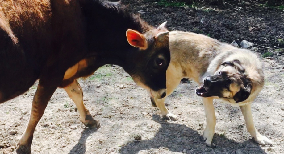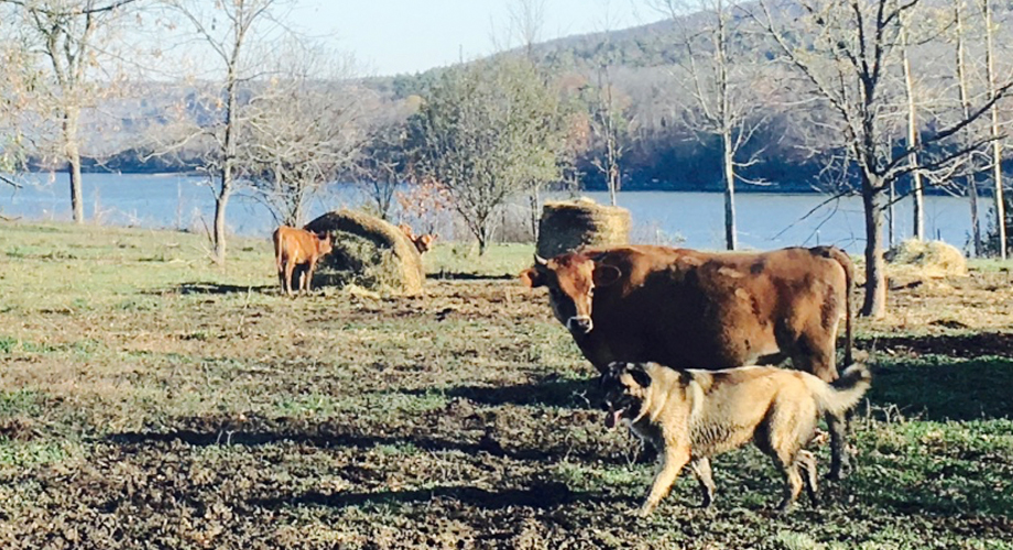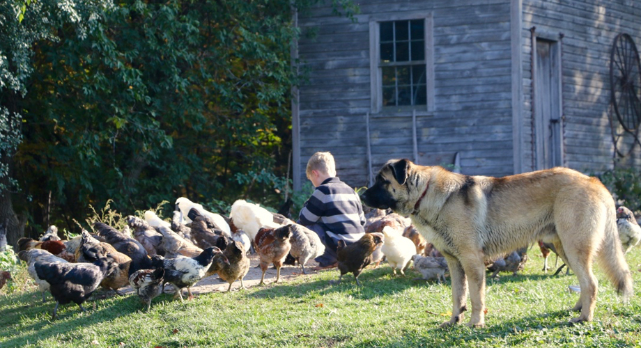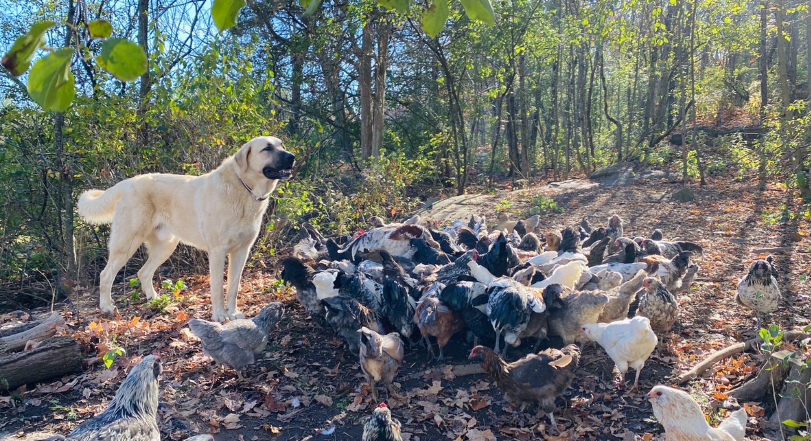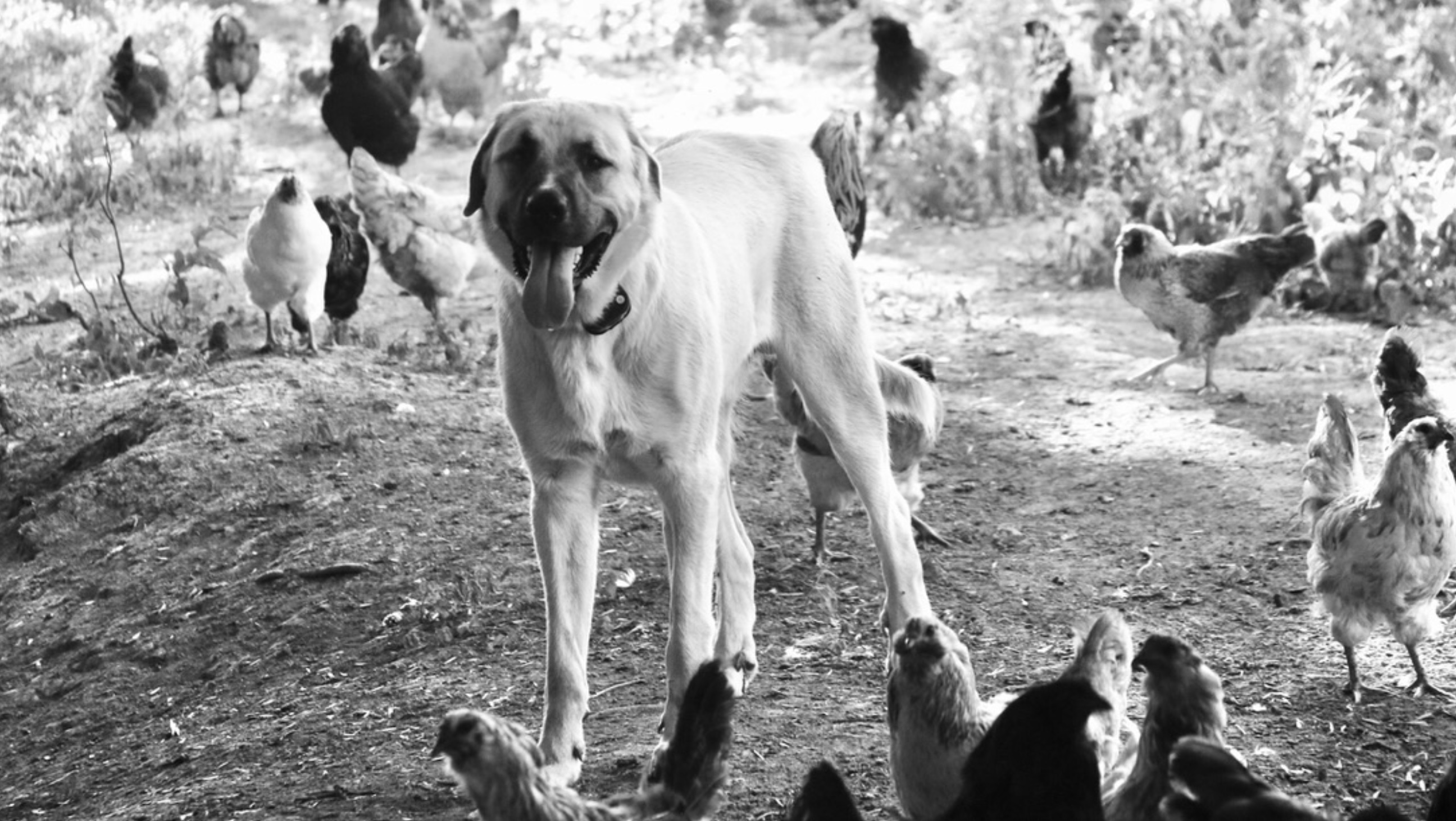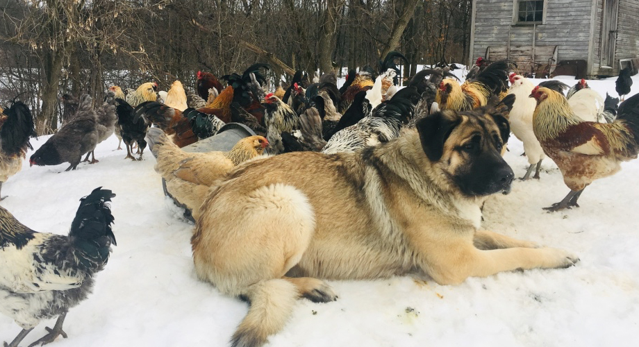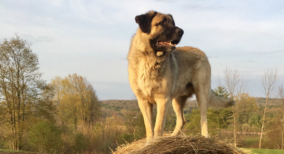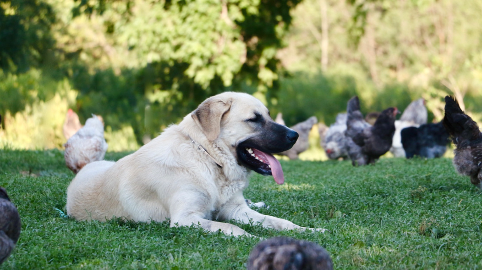 Our 120 lb. female Kangal-Anatolian Shepherd Mix - "Miss Honey" - is an excellent All-Purpose Working Farm Dog and Livestock Guard Dog who excels at laying around watching free-range chickens. She barks only when there are actually predators lurking around or if there is a cow loose in her free-range chicken area. She is highly trainable, has great manners, obedience, athletic ability, and is gentle with children and small animals. She is also willing to join in with our other multi-purpose working farm dogs in moving cattle when asked to do so.