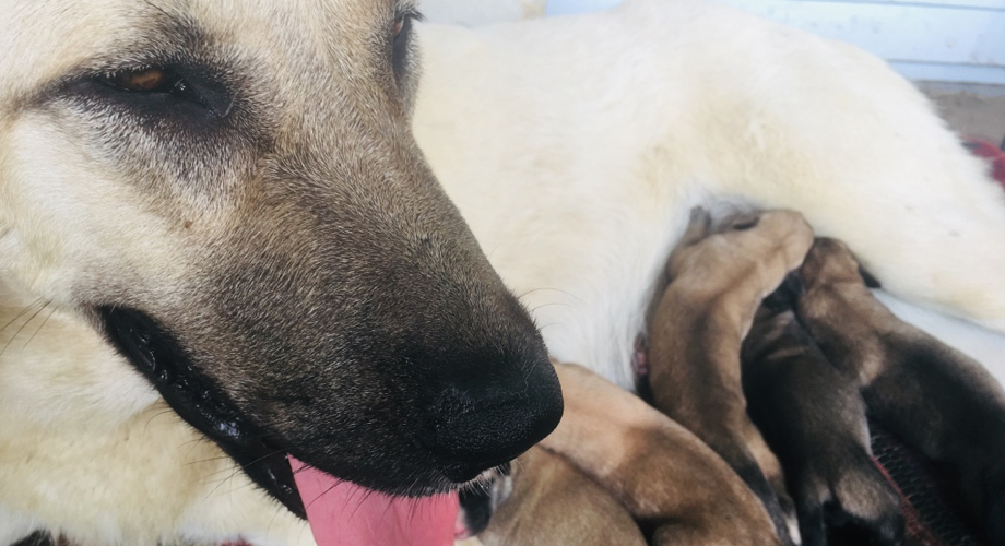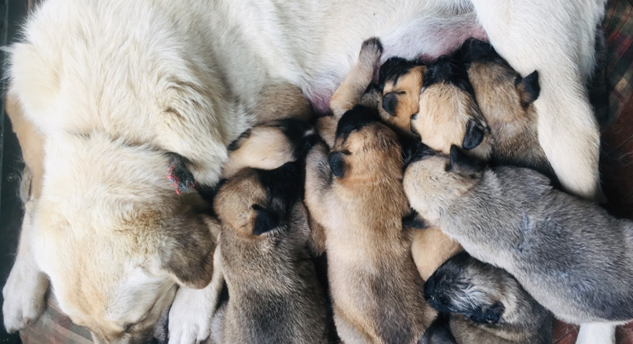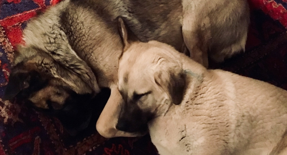 Ben (120 lb. German Shepherd x St. Bernard) x Miss Honey (120 lb. Kangal-Anatolian Shepherd)