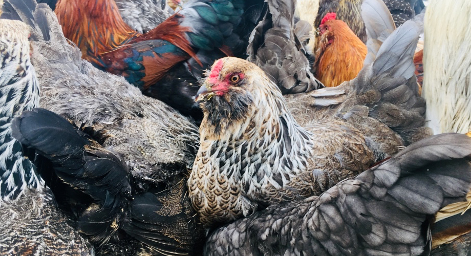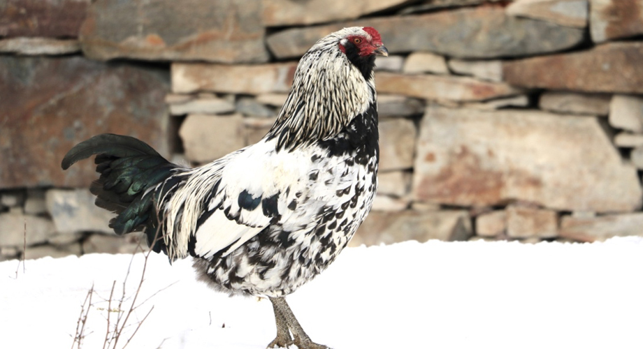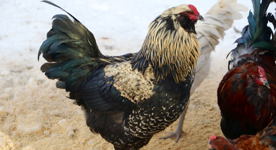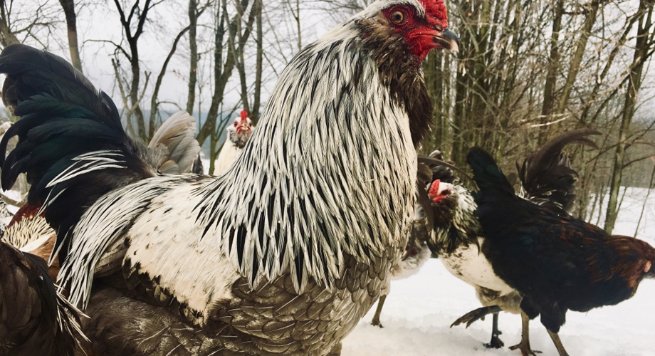 Our Ameraucana are a beautiful, genetically diverse mixed color flock of over 100 birds. The hens are great layers of large misty blue and minty green eggs. The vibrantly colored roosters are fast growing and docile. Most are cold-hardy with small, frost-resistant combs. Our colors include red-brown, wheaten, silver, white, black, blue, blue birchen, chocolate, mauve, and lavender with fine penciling, laced, partridge, spangled, mottled, and splash feather patterns. All have slate or olive green legs and bushy beards and muffs.
