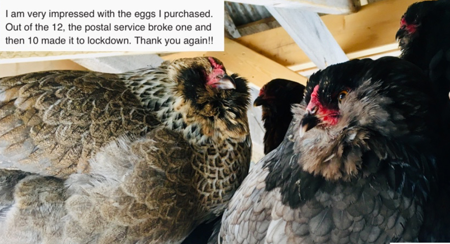 We ship only the freshest, cleanest, prettiest colored, and most perfectly shaped eggs. Eggs are no older than 24 hours when they ship (I can pack two dozen per day at this time). Twelve eggs (10+ guaranteed to arrive in condition for incubating) are carefully gathered and packaged in reused/reusable materials such as tissue/newspaper, batting, shipping bubbles to form a 3-6” pad around the exterior of a reusable egg carton in a sturdy lightly used box. Each egg is cushioned with tissue.