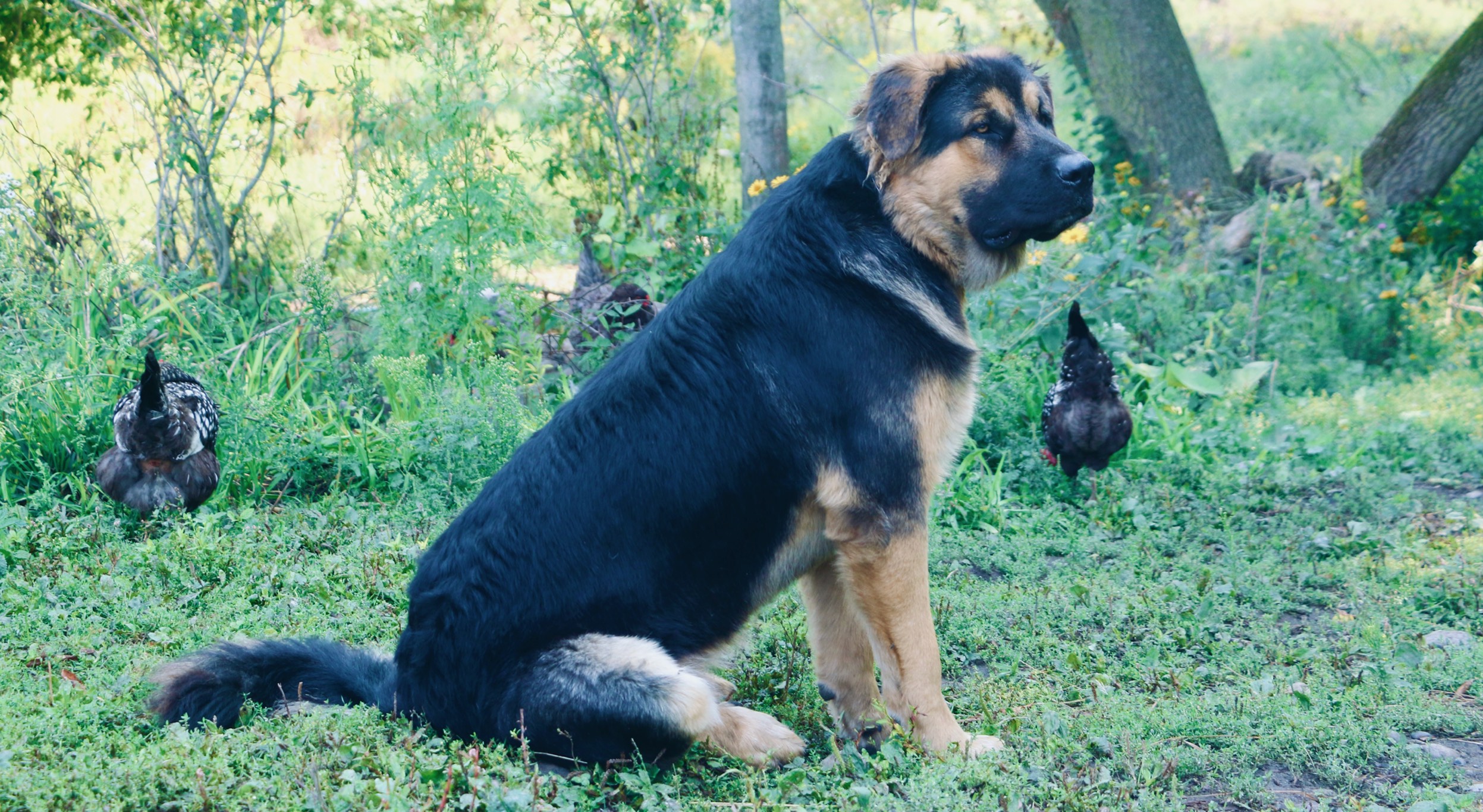 Winslow is learning to herd and hold cattle in place on command. Quick to learn flock-protection, he was trustworthy around even the smallest chicks (with supervision from the window) from his first days in the yard.